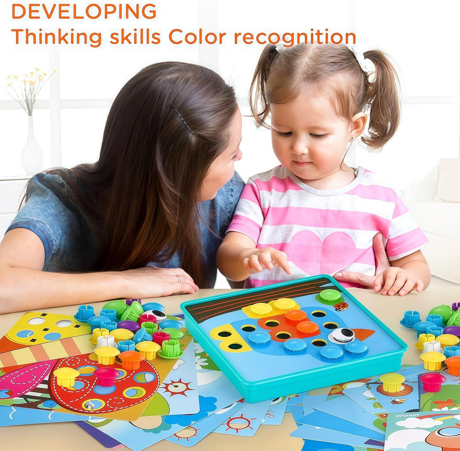 Art Toys,TINOTEEN Baby Toddler Toy Color Matching Shape Button Art Toys Mosaic Pegboard